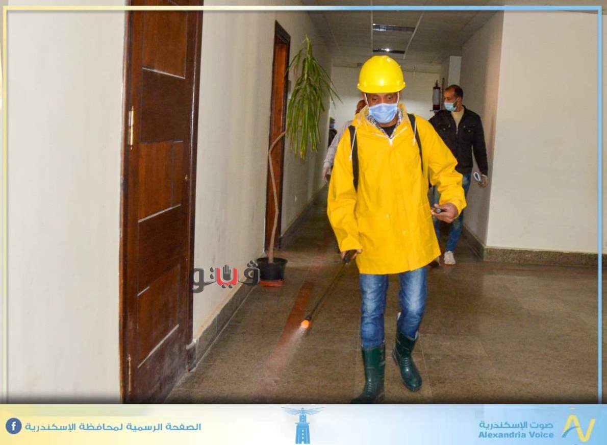 وواصل مسئولو محافظة الإسكندرية أعمال التطهير والتعقيم بجميع الإدارات بديوان عام محافظة الإسكندرية والأحياء والإدارات التابعة لها. وذلك ضمن الإجراءات الإحترازية التى تتخذها المحافظة للحد من انتشار فيروس كورونا المستجد " كوفيد ١٩".