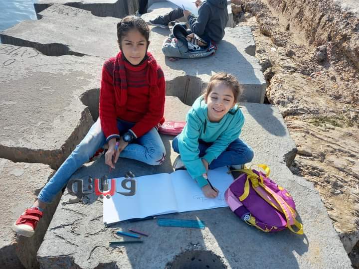 طلاب الإسكندرية يبدعون على كورنيش البحر لرسم معالم المحافظة | صور