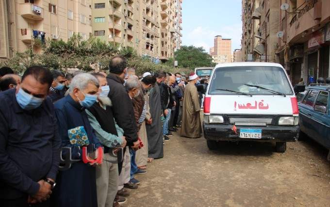 وأدى المشيعون من الأهالي وأقارب الفقيد وقدامى الرياضيين صلاة الجنازة على جثمان الفقيد داخل سيارة إسعاف، معزولا كليا لتأمين حياة الحاضرين.