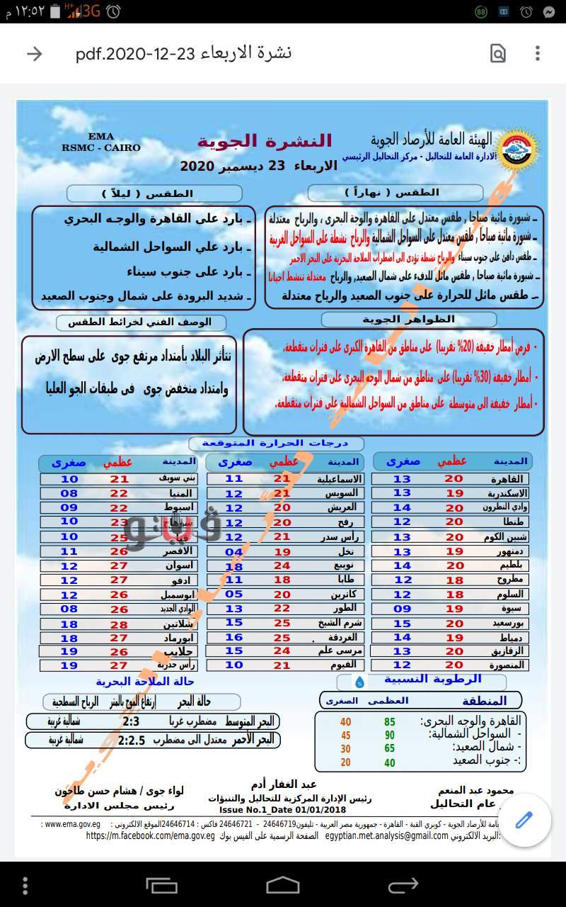 وحذرت الأرصاد الجوية من شبورة مائية كثيفة على أغلب البلاد وأمطار خفيفة على الوجه البحرى والقاهرة الكبرى وأمطار متوسطة إلى خفيفة على السواحل الشمالية.