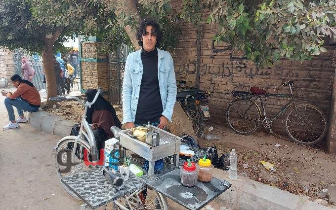 في شارع كلية التجارة بجامعة بنها يقف حسن احمد علي من عرب الرملة بقويسنا بمحافظة المنوفية والذي يدرس بالفرقة الثانية بكلية الحقوق جامعة السادات والذي يجد ان جامعة بنها الاقرب له فيقطع المسافة ما بين قويسنا وبنها ليقف في هذا الشارع قاصدا "اكل العيش الحلال" .