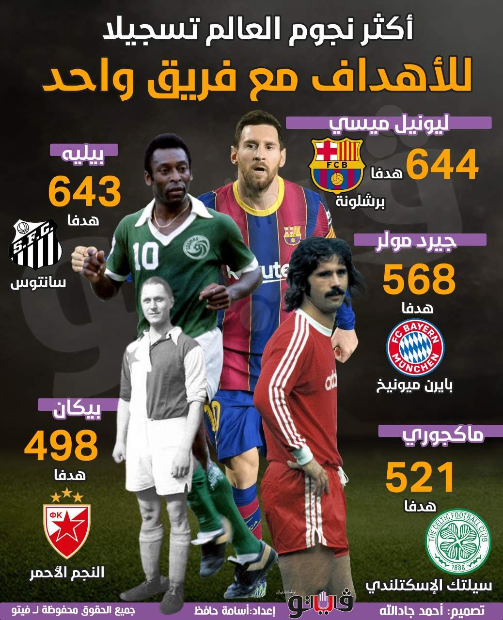 أكثر نجوم العالم تسجيلا للأهداف مع فريق واحد | إنفوجراف
