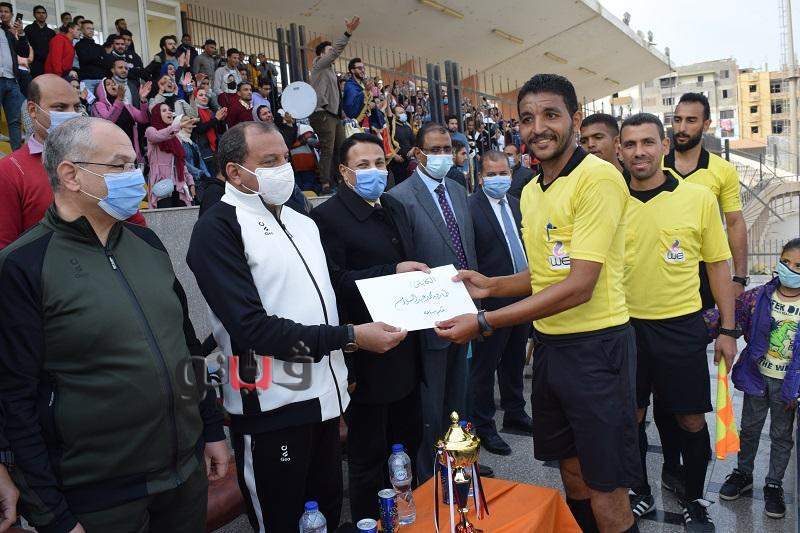 وجاء ذلك بحضور الدكتور جمال عبد الرحمن نائب رئيس الجامعة لشئون التعليم والطلاب، والدكتور أسامة سعيد عميد كلية التجارة، والكابتن محمد فاروق مدير عام رعاية الشباب، والكابتن توني عثمان عضو لجنة الحكام الرئيسية، وعدد من أعضاء هيئة التدريس بكليتي التجارة والتربية الرياضية.