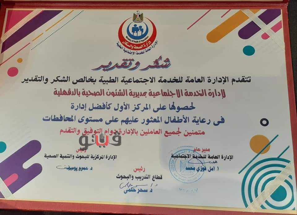 إدارة الخدمة الاجتماعية بصحة الدقهلية تحصل على المركز الأول في رعاية الأطفال | صور