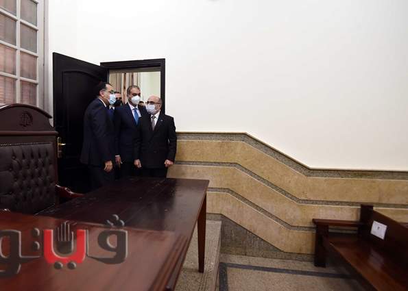 وتفقد الدكتور مصطفى مدبولي، رئيس مجلس الوزراء، اليوم، أعمال تطوير مبنى مجمع محاكم عابدين، وذلك بحضور المستشار عمر مروان، وزير العدل، والمستشار علاء الدين فؤاد، وزير شئون المجالس النيابية، واللواء خالد عبد العال، محافظ القاهرة، ولفيف من قيادات وزارة العدل.
