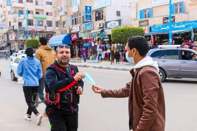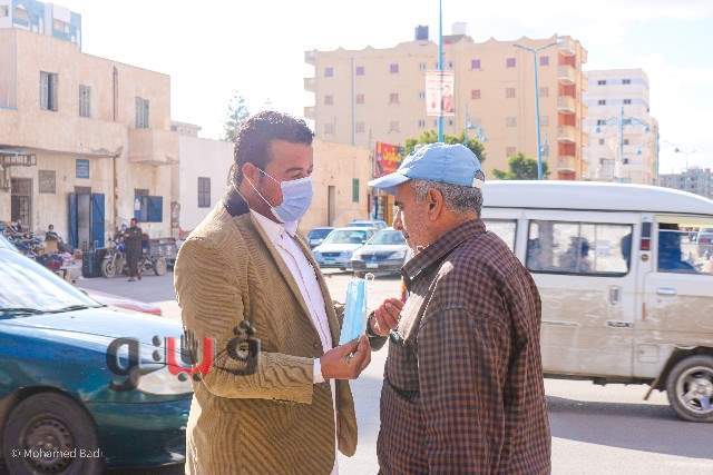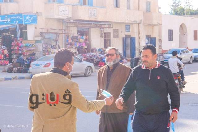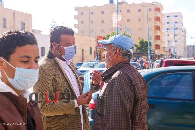 شباب مطروح يوزعون الكمامات بالشوارع مجانا على المارة | صور