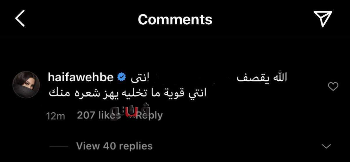 وجاء في التعليق المزيف الذي نسب لـ هيفاء وهبي، تعبير غير لائق إضافة إلى "إنتي قوية ما تخليه يهز شعره منك".