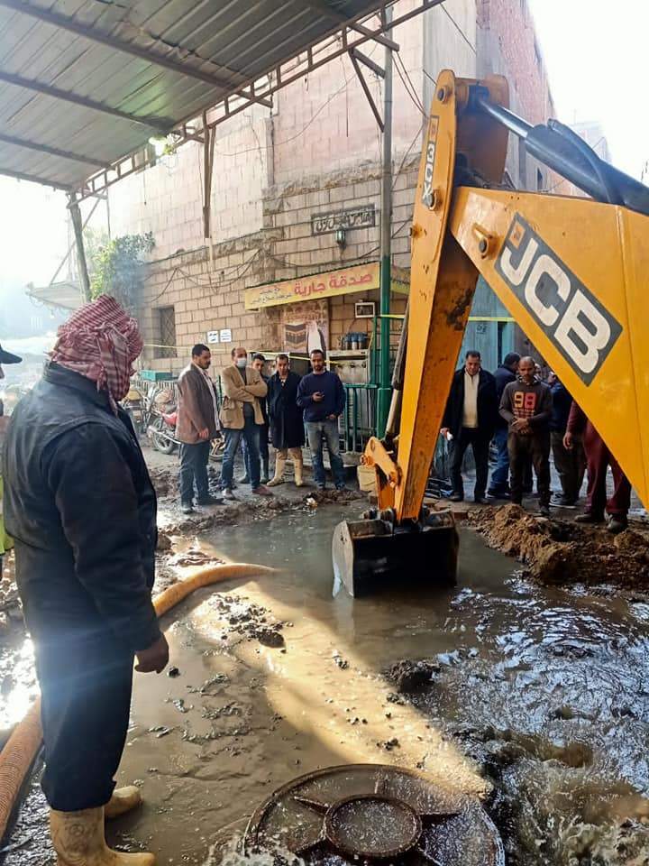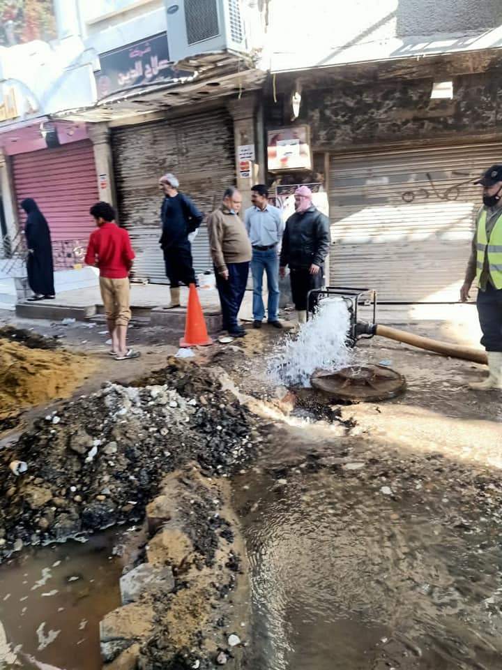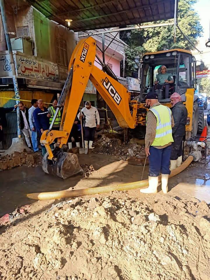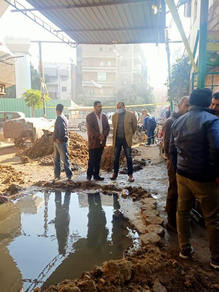 المعنية بحي شمال الجيزة، أعمال إصلاح كسر ماسورة المياه بشارع البصراوي تقاطع شارع