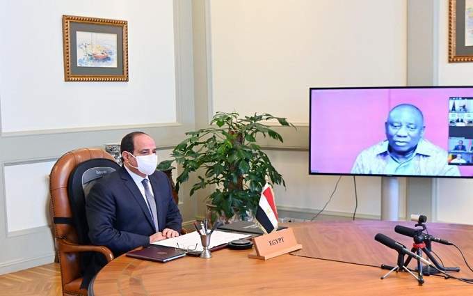 وأعرب الرئيس خلال الاجتماع عن التقدير لأخيه الرئيس الجنوب أفريقي "سيريل رامافوزا" الرئيس الحالي للاتحاد الافريقي لحرصه على دورية انعقاد اجتماعات الاتحاد الأفريقي بالرغم من التحديات التي يفرضها تفشى فيروس كورونا، مؤكداً على أهمية استمرار الجهود الجماعية للنهوض بأجندة العمل الأفريقي المشترك في ظل الظروف الدقيقة الراهنة.