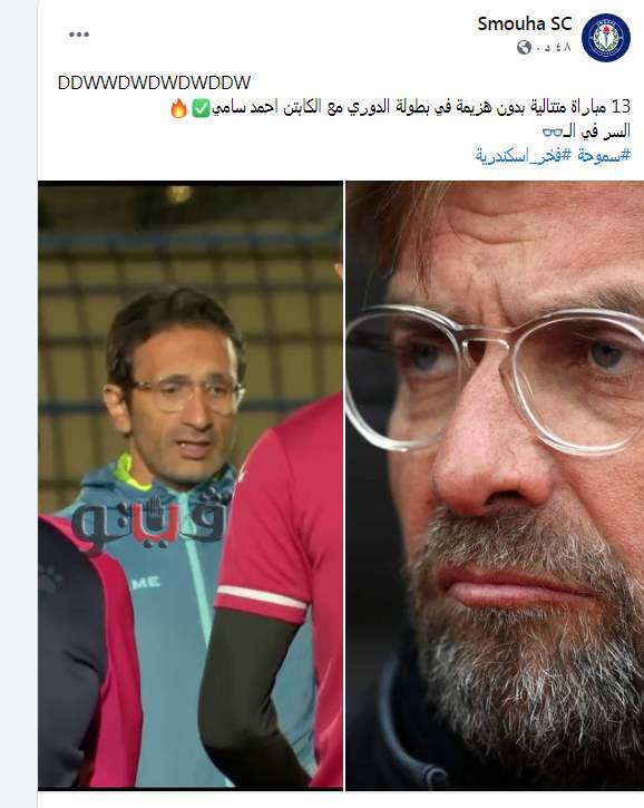 ونشر نادي سموحة عبر حسابه الرسمي بموقع التواصل الاجتماعي فيس بوك قائلا: "13 مباراة متتالية بدون هزيمة في بطولة الدوري مع الكابتن أحمد سامي السر في النظارة".