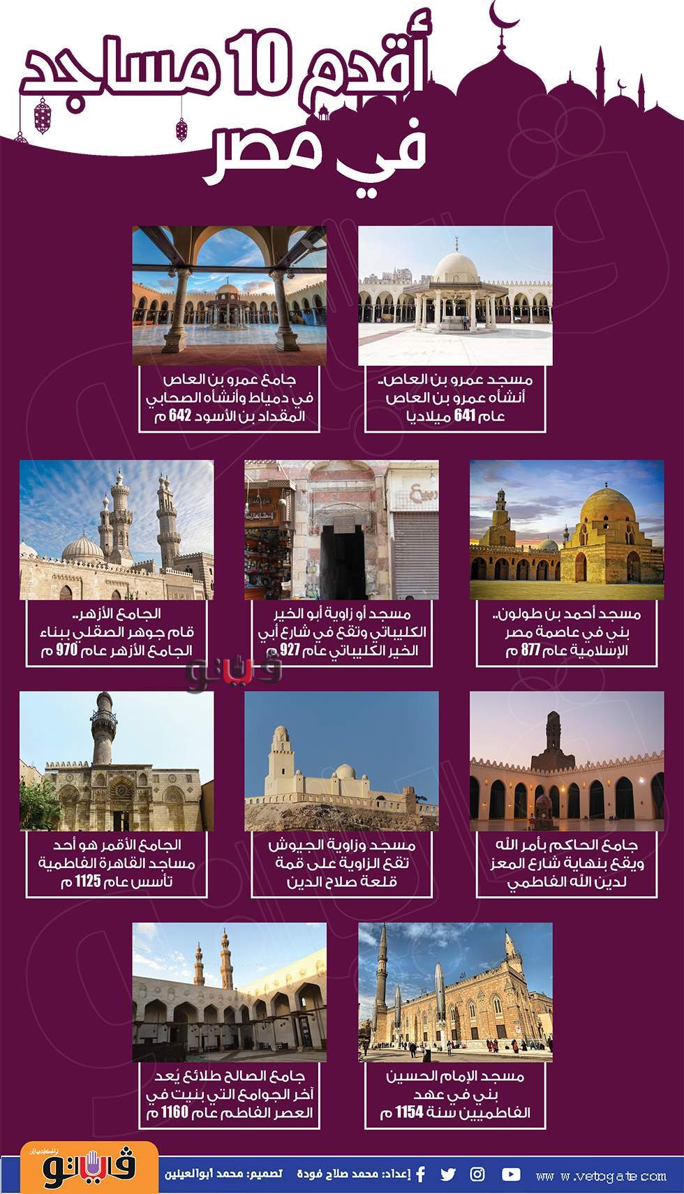 تعرف على أقدم 10 مساجد في مصر | إنفو جراف الجمعة 25/ديسمبر/2020 - 07:56 م 12/25/2020 7:56:00 PM أقدم 10 مساجد محمد صلاح فودة شارك طباعة 18 حجم الخط شارك طباعة مسجد عمرو بن العاص مساجد مصر جامع عمرو بن العاص الجامع الأزهر مسجد الامام الحسين الإمام الحسين الحاكم بامر الله أقدم مساجد مصر الجامع الاقمر جامع الصالح زاوية ابو الخير مسجد أحمد بن طولون