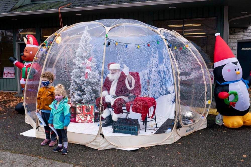 كورونا تغير طقوس الكريسماس.. بابا نويل بالكمامة والبدلة الواقية داخل فقاعات هوائية.. شجرة الصنوبر هزيلة وتحمل مناديل وكمامات