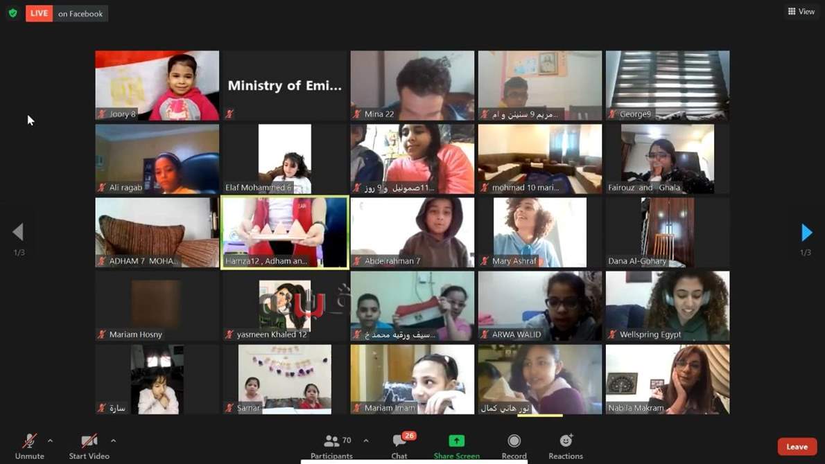 كما أوصت السفيرة نبيلة مكرم الأبناء بتوخي الحذر واتباع كافة الإجراءات الاحترازية في ظل انتشار الموجة الثانية من جائحة فيروس كورونا العالمية حاليًا، موجهة الدعوة إليهم لزيارة مصر في أول فرصة عقب انتهاء الجائحة، والانضمام للمعسكرات التي تنظمها الوزارة لأبناء المصريين بالخارج بالتعاون مع شركة "ويل سبرنج".