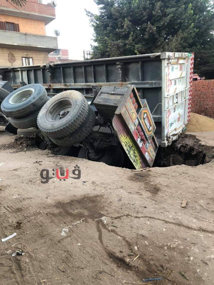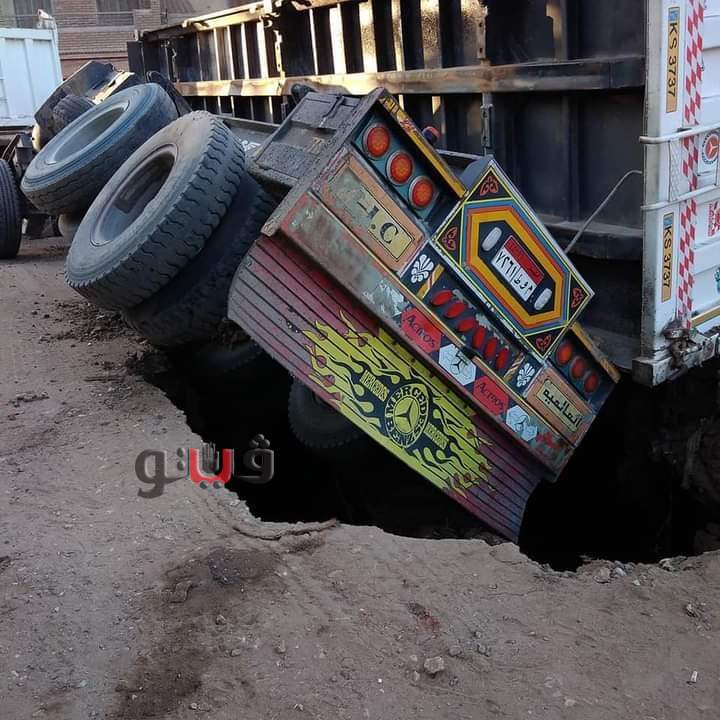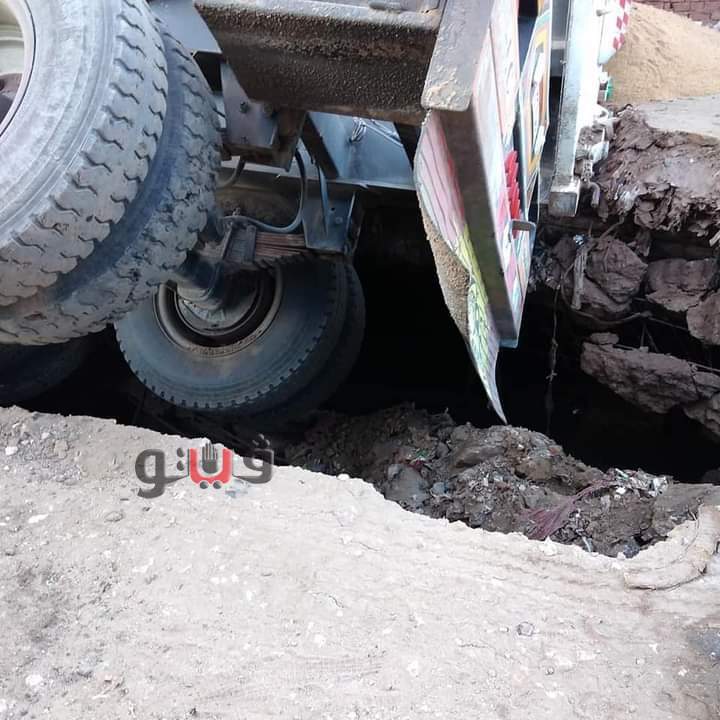 "تريلا" تتسبب فى سقوط جزء من سقف كوبري بالمنوفية | صور