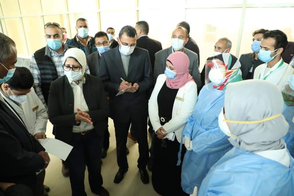 كما أشادت الوزيرة بجهود الفريق الطبي بالمستشفي قائلة لهم: "أقبل رؤوسكم جميعا و افخر بالعمل معكم أنتم جنود المرحلة الحالية وأثق بقدراتكم في مواجهة هذا الوباء".