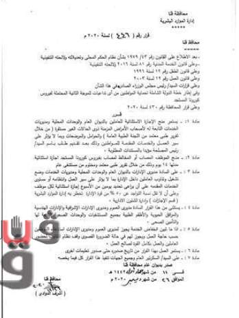 الداودي يعلن خريطة المحافظة لمواجهة الموجة الثانية من كورونا