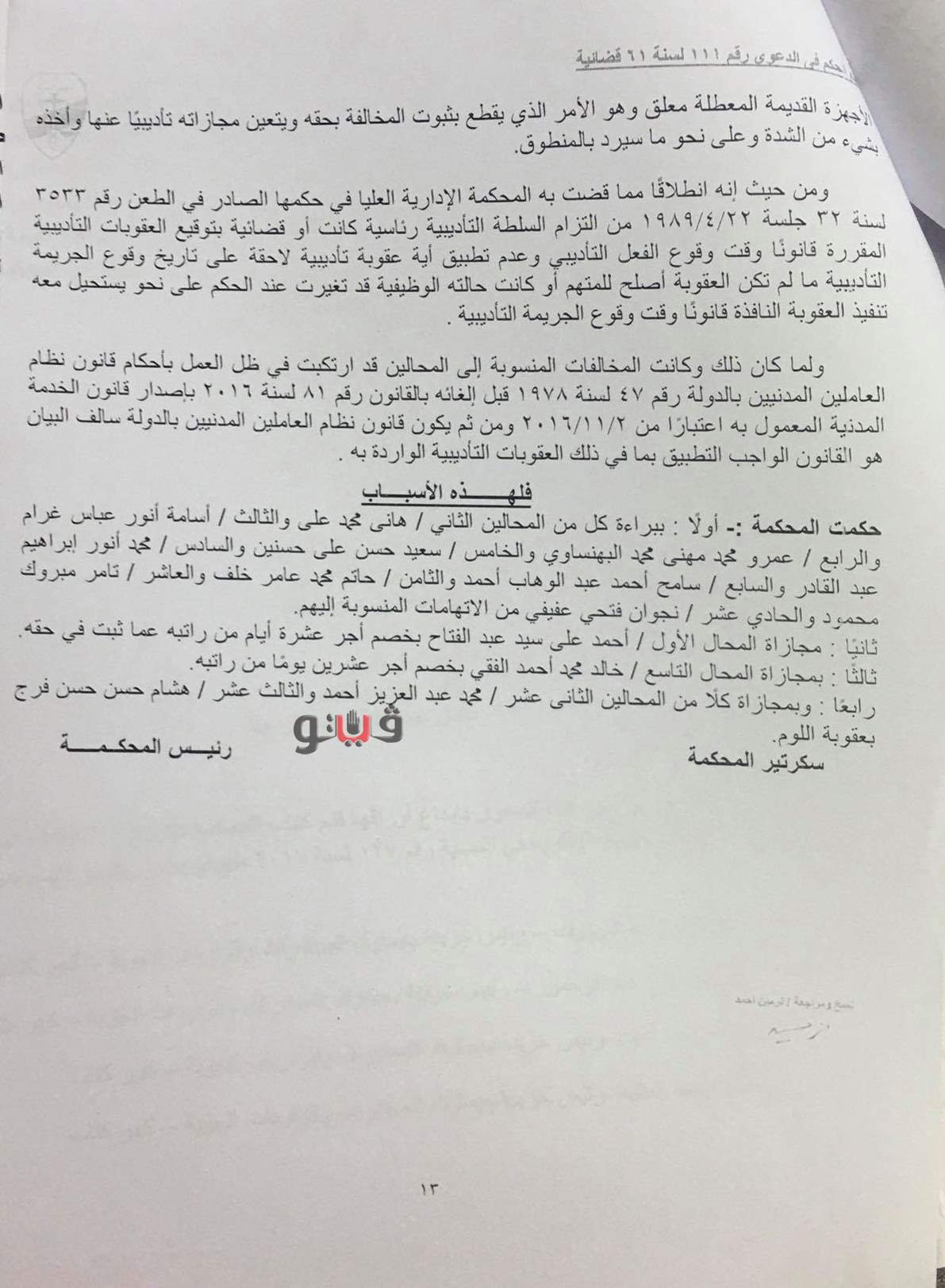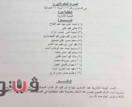 بالأسماء.. براءة 6 محامين ومجازاة 10 آخرين بـ"مياه وصرف المنوفية"