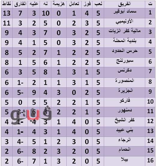 وجاء جدول ترتيب القسم الثاني بعد الجولة الخامسة كالتالي