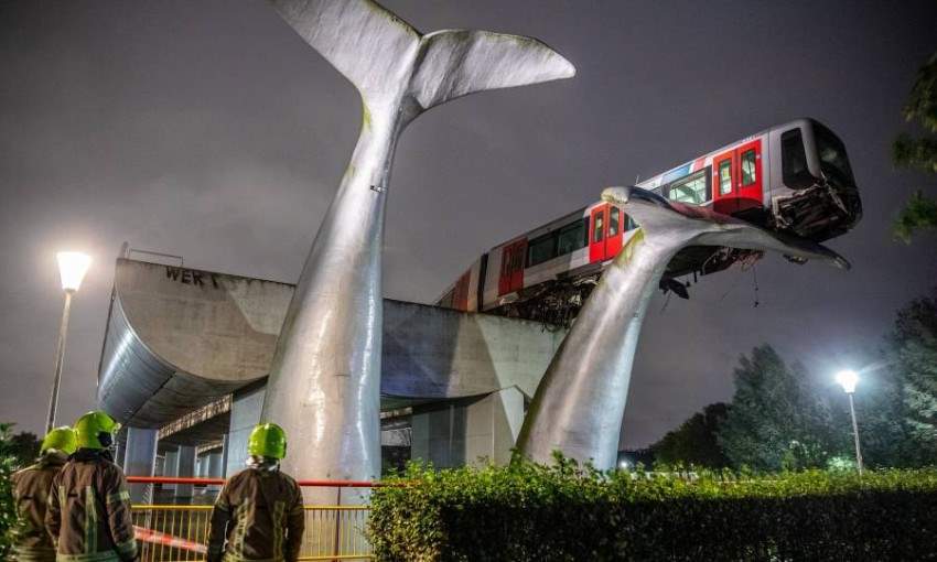 نجا قطار مترو من كارثة في 2 نوفمبر بعدما اخترق حاجز توقف قرب مدينة روتردام الهولندية ليستقر عند مجسم عملاق لذيل حوت، ما جنب سائق المركبة التي كانت خالية من الركاب مصيراً أسود محتماً.