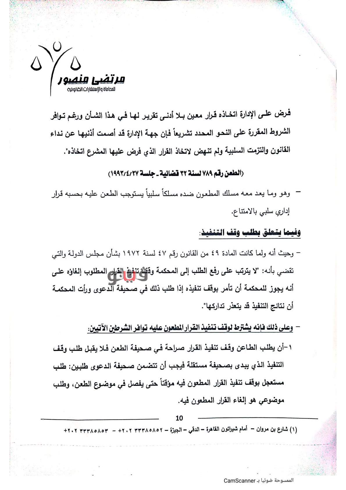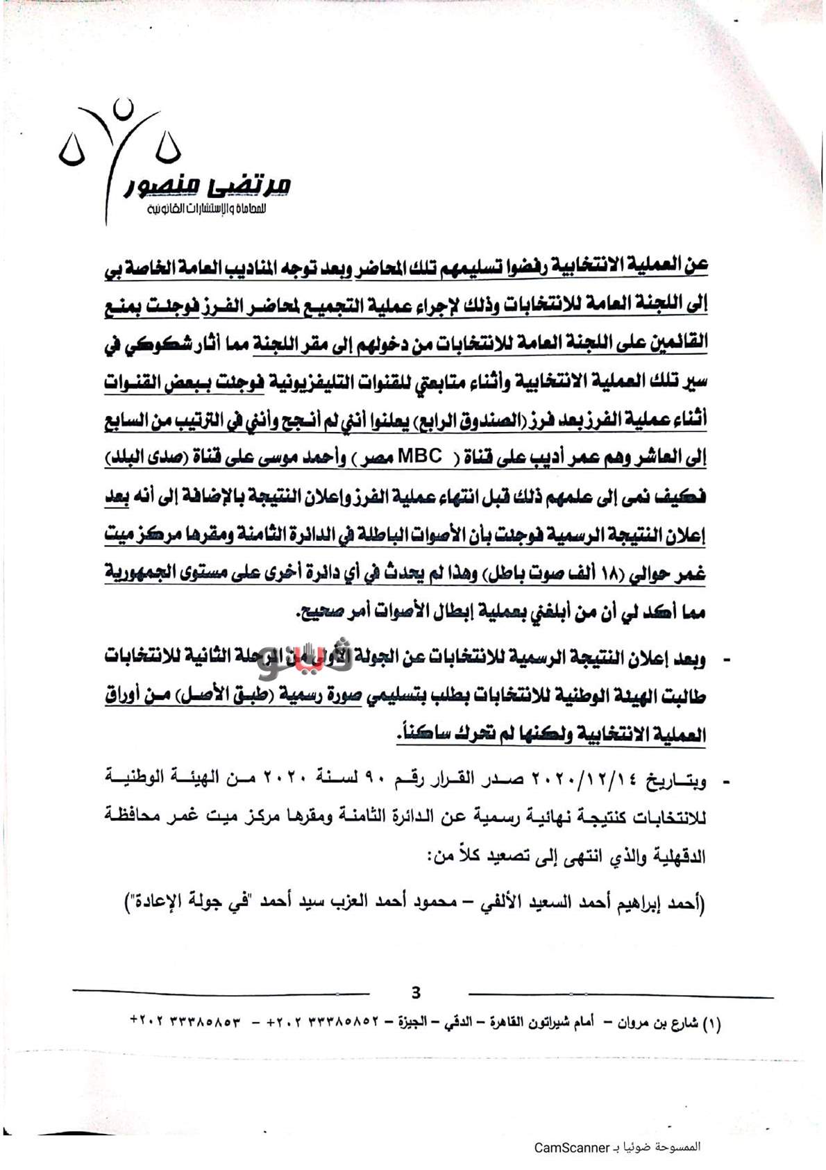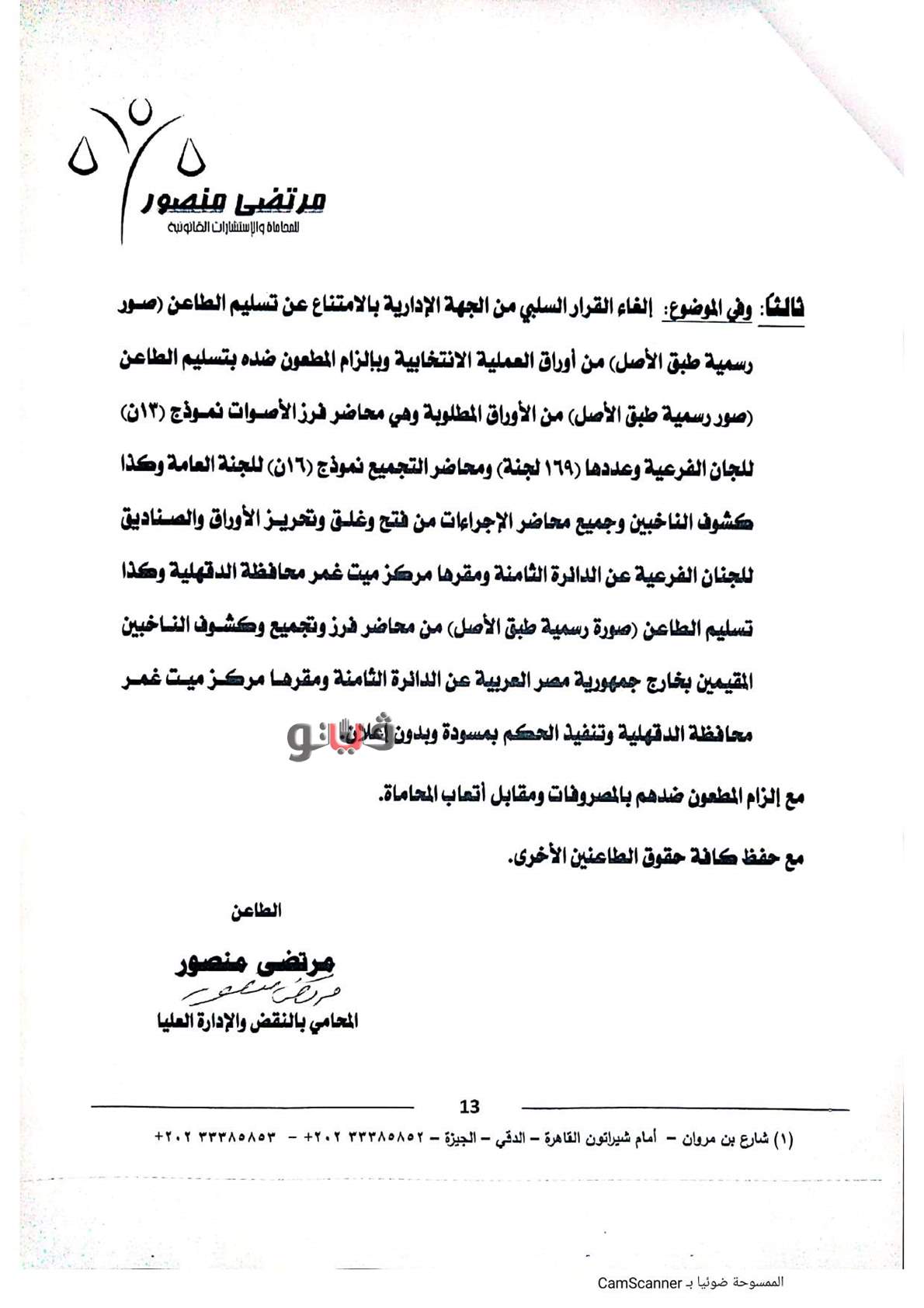 مرتضى منصور يطعن على نتيجة انتخابات ميت غمر بالدقهلية| مستند