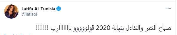 وكتبت لطيفة التونسية تغريدة على تويتر "صباح الخير والتفاءل بنهاية 2020 قولووووو يااااااارب!!!!!!!"