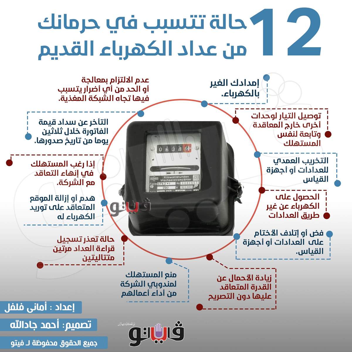 ١٢ حالة تتسبب في حرمانك من عداد الكهرباء القديم | إنفوجراف الخميس 31/ديسمبر/2020 - 11:19 ص 12/31/2020 11:19:43 AM عداد الكهرباء أمانى فلفل شارك طباعة 18 حجم الخط شارك طباعة وزارة الكهرباء عداد الكهرباء عداد الكهرباء القديم