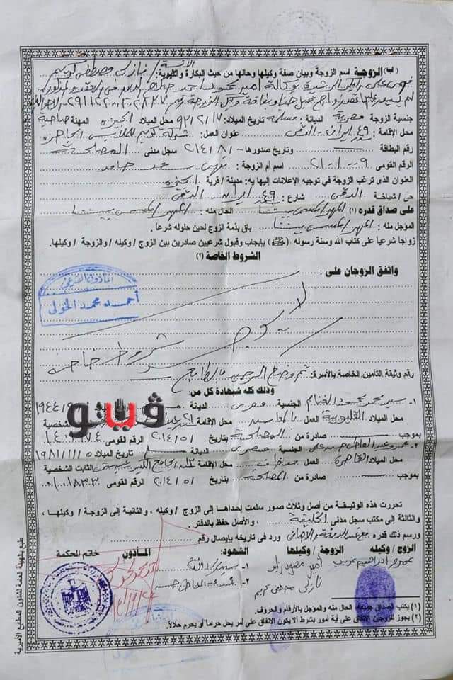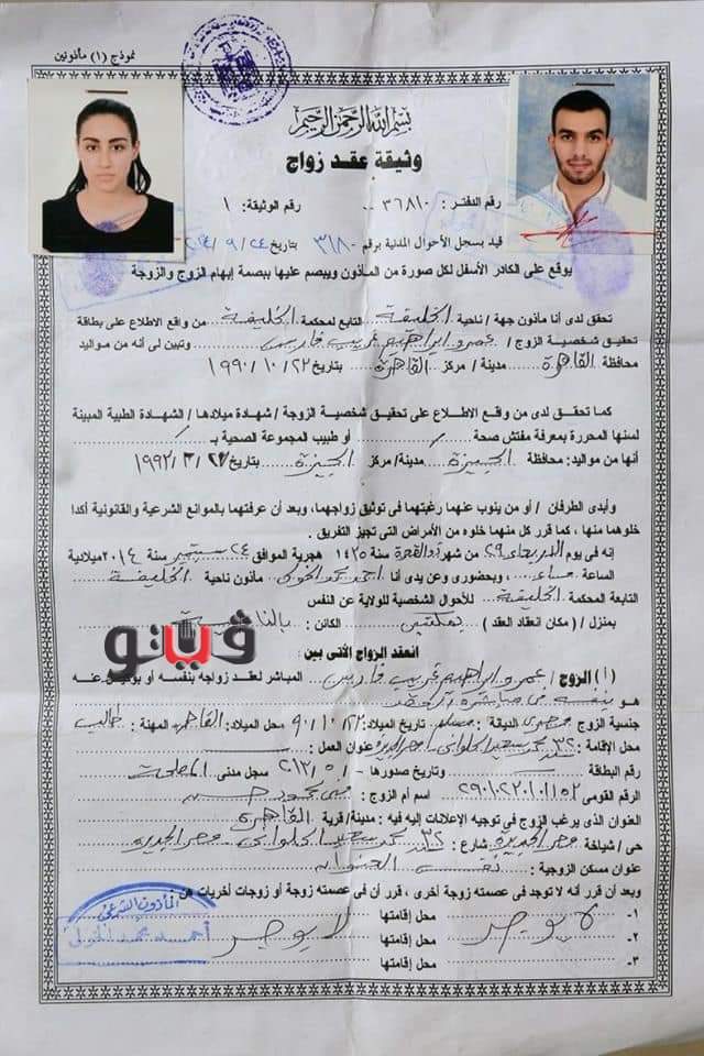 وقالت نهى العمروسي: "وثيقة الجواز صحيحة 100% ..المتهم عمرو غريب اتجوز بنتي من ورايا بعد ما رفضته وكان عمرها 20 سنة ".