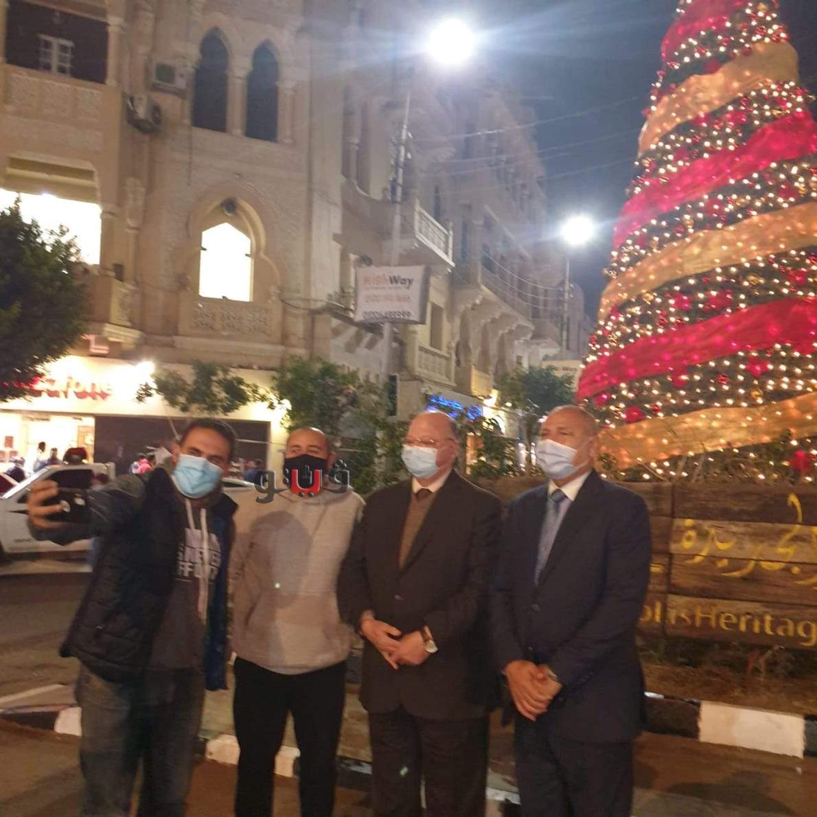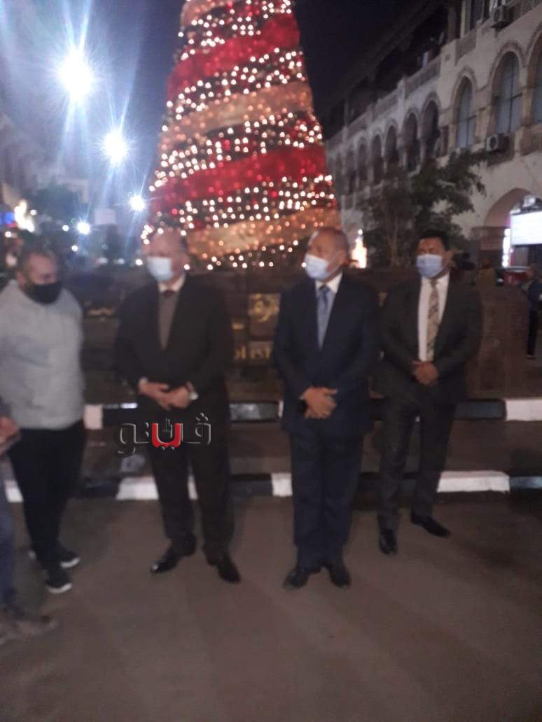 تفقد اللواء خالد عبد العال محافظ القاهرة، يرافقه الدكتور إبراهيم صابر ، نائب محافظ القاهرة للمنطقة الشرقية، شجرة عيد الميلاد والتى أهدتها جمعية تراث مصر الجديدة لأهالى مصر الجديدة، بمنطقة الكوربة بمناسبة احتفالات رأس السنة.