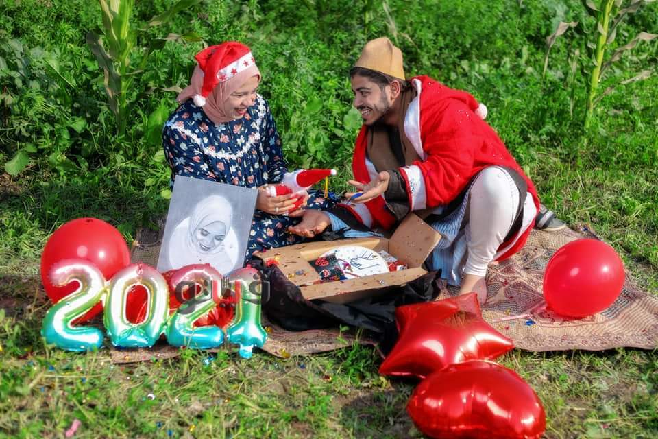 "بابا نويل أصله فلاح".. حكاية جلسة تصوير غريبة لشاب وخطيبته بالمنوفية l صور