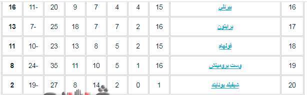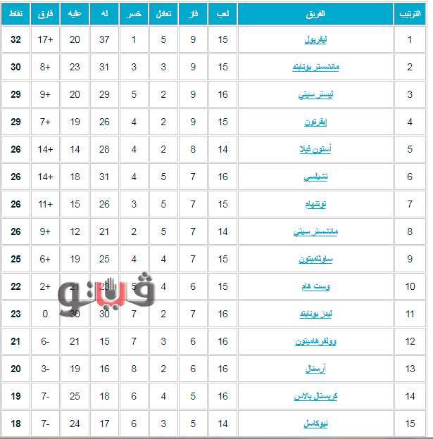 وجاء ترتيب الدوري الإنجليزي على النحو التالى: