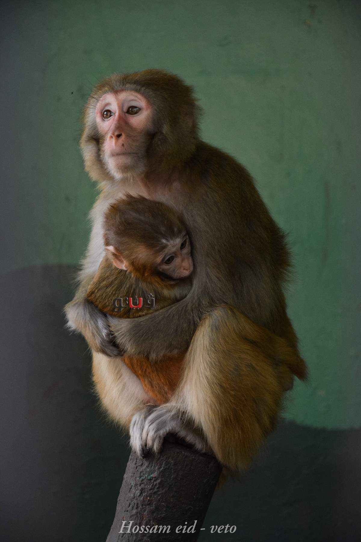 قرد وأمه في شم النسيم بعد غلق حديقة الحيوان بسبب جائحة كورونا ٢٠ أبريل ٢٠٢٠