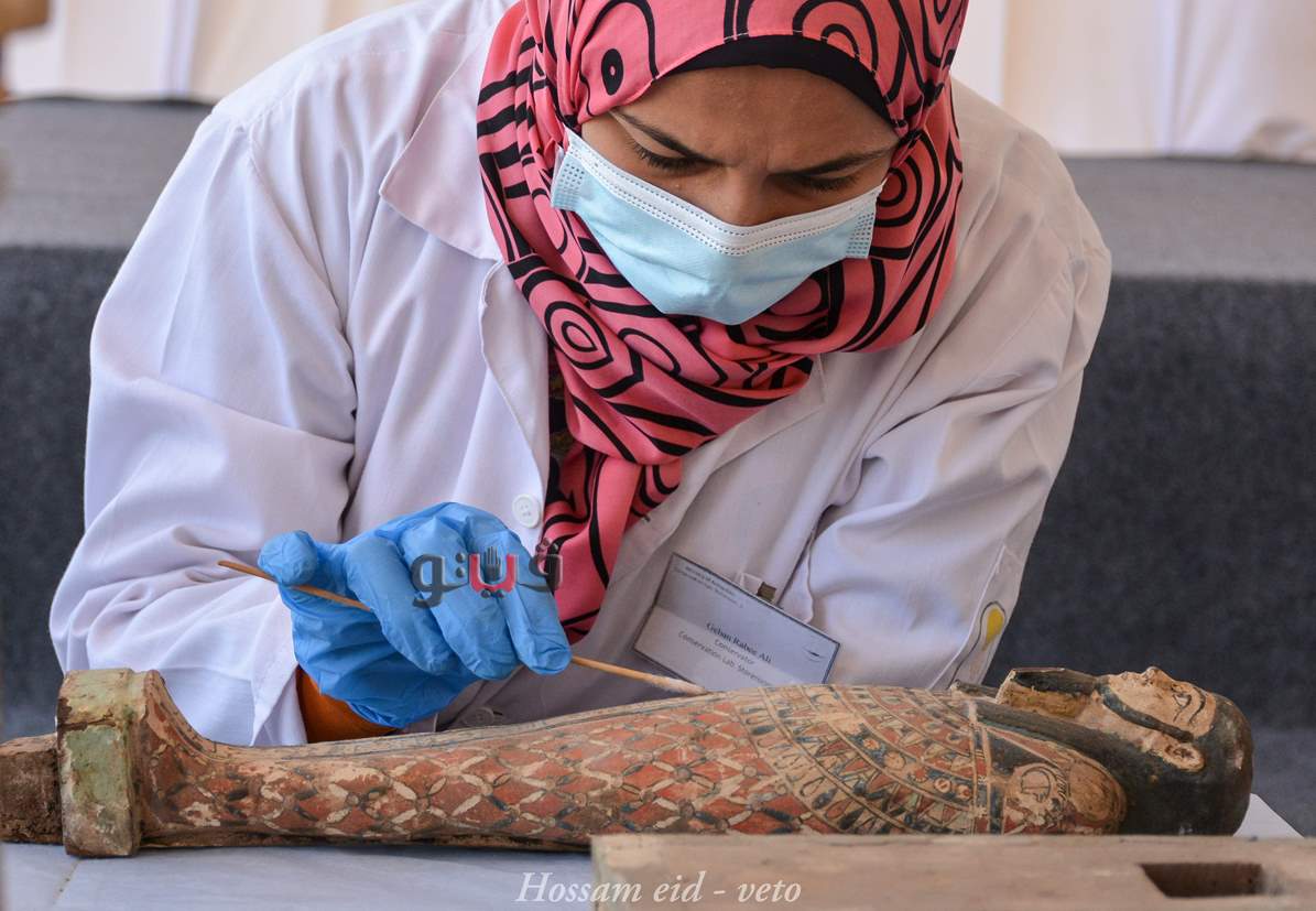 أثناء ترميم أحد الإكتشافات الأثرية في سقارة