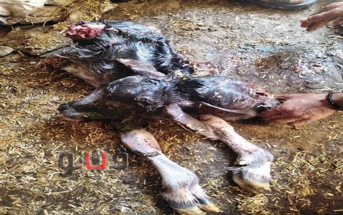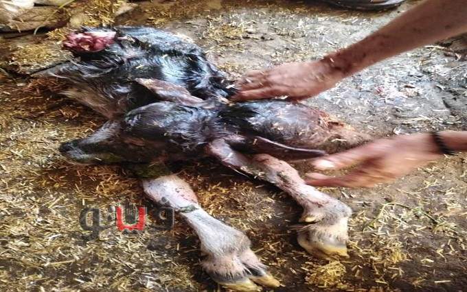 وقال النشطاء: إن الجاموسه ولدت برأسين وأثناء عملية ولادته اعتقد الأهالي أنه اثنان نظرا لوجود رأسين .