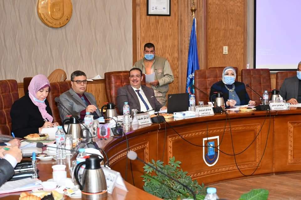 جاء ذلك خلال اجتماعه ، اليوم الأربعاء مع مجلس جامعة قناة السويس ، وفي حضور الدكتورة ماجدة هجرس نائب رئيس الجامعة لشئون الدراسات العليا والبحوث، والدكتور محمد شقيدف نائب رئيس الجامعة لشئون التعليم والطلاب، وعمداء الكليات والسيدة هدي فرج أمين عام الجامعة.
