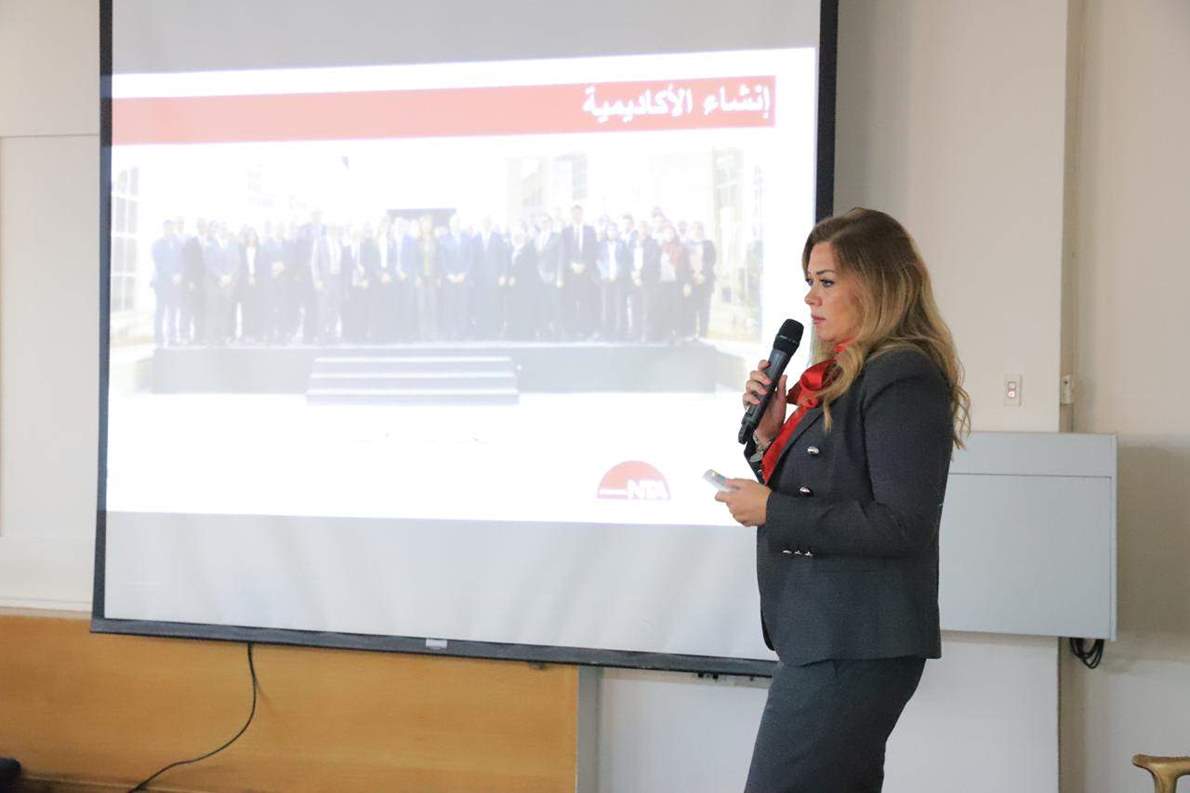 افتتحت رشا راغب حديثها مع السادة السكرتيرين، بالتعريف بالأكاديمية الوطنية التي أُنشئت بإصدار الرئيس عبد الفتاح السيسي رئيس الجمهورية، قرارًا جمهوريًا رقم 434 لسنة 2017، ثم تطرقت إلى رؤية الأكاديمية ومجلس أمناءها، إلى جانب أنواع البرامج المُقدمة بالأكاديمية، تلى ذلك عرض مقطع فيديو تسجيلي عن إنجازات الأكاديمية خلال الفترة الماضية.
