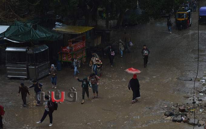 عدد من الأطفال يتفادون الأمطار الغزيرة عقب عودتهم من المدارس