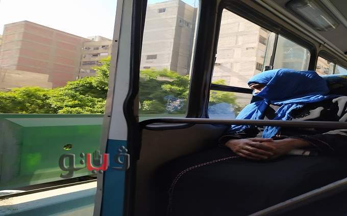 سيدة ترتدي وشاحها بدلا من الكمامة داخل المواصلات العامة