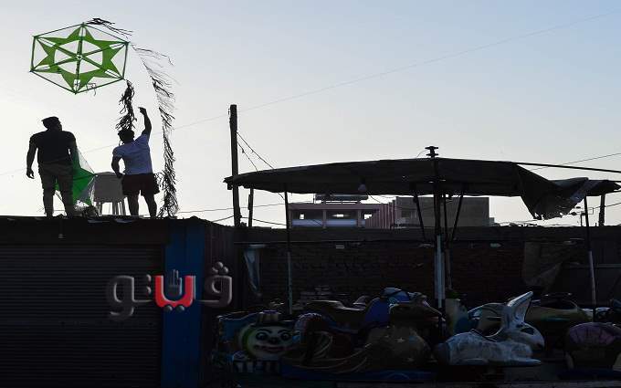 شابان يمرحان بالطائرات الورقية، بدلا عن الملاهي المغلقة خلال أيام العيد