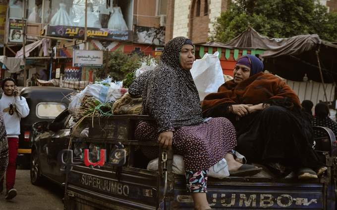 سيدتان في طريقهما إلي عملهما بأحد الأسواق الشعبية