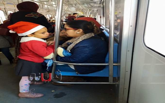 طفلة ترتدي قبعة سانتا كلوز في إحدى محطات المترو