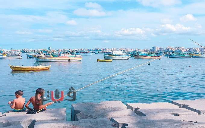 أخوان يتشاركان صيد السمك في آخر أيام فصل الصيف، بشاطئ بحري في الإسكندرية