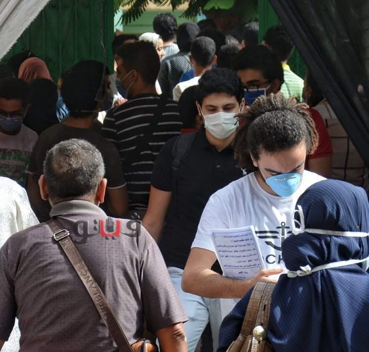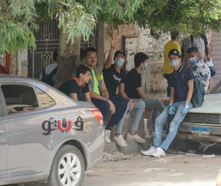 طلاب الثانوية العامة قبل الدخول للجان الامتحانات والالتزام بالإجراءات الاحترازية للوقاية من كورونا