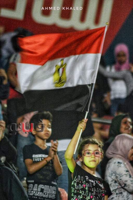 طفلة ترفع علم مصر أثناء مشاهدتها مباراة القمة بين الأهلي والزمالك