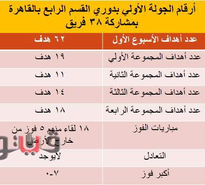 أرقام الجولة الأولى لدوري القسم الرابع بالقاهرة بمشاركة 38 فريقا