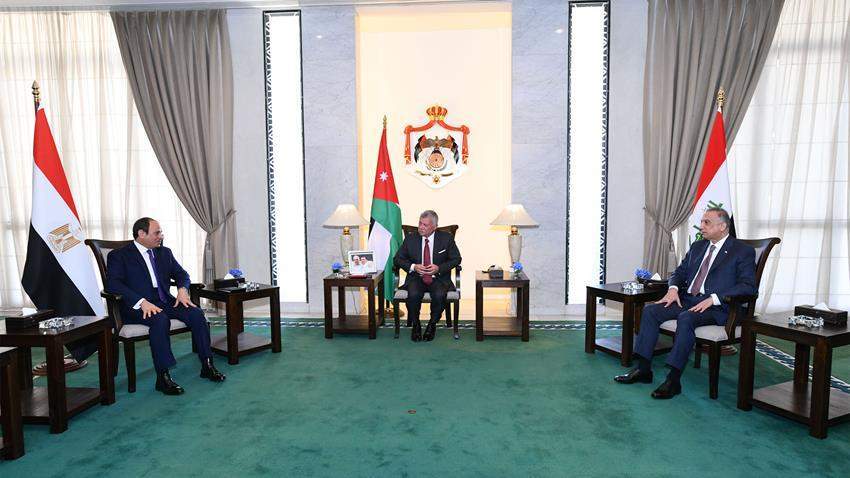 وشارك الرئيس السيسي في القمة الثلاثية بالعاصمة الأردنية عمان، مع عاهل المملكة الأردنية الملك عبد الله الثاني، ورئيس وزراء العراق السيد مصطفى الكاظمي.