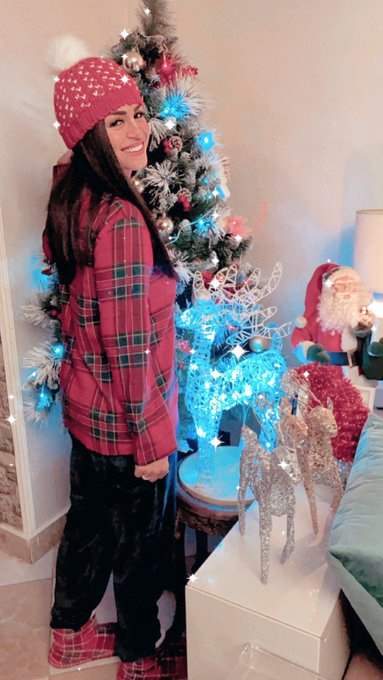 ونشرت منة فضالي جلسة تصوير لها مرتدية "البيجامة"، وبجوارها شجرة الكريسماس وبابا نويل.