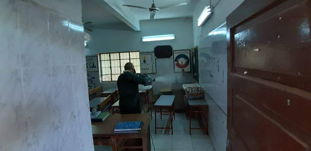 والملاعب وقاعات الافراح ومازال التطهير مستمر بنطاق الحى.