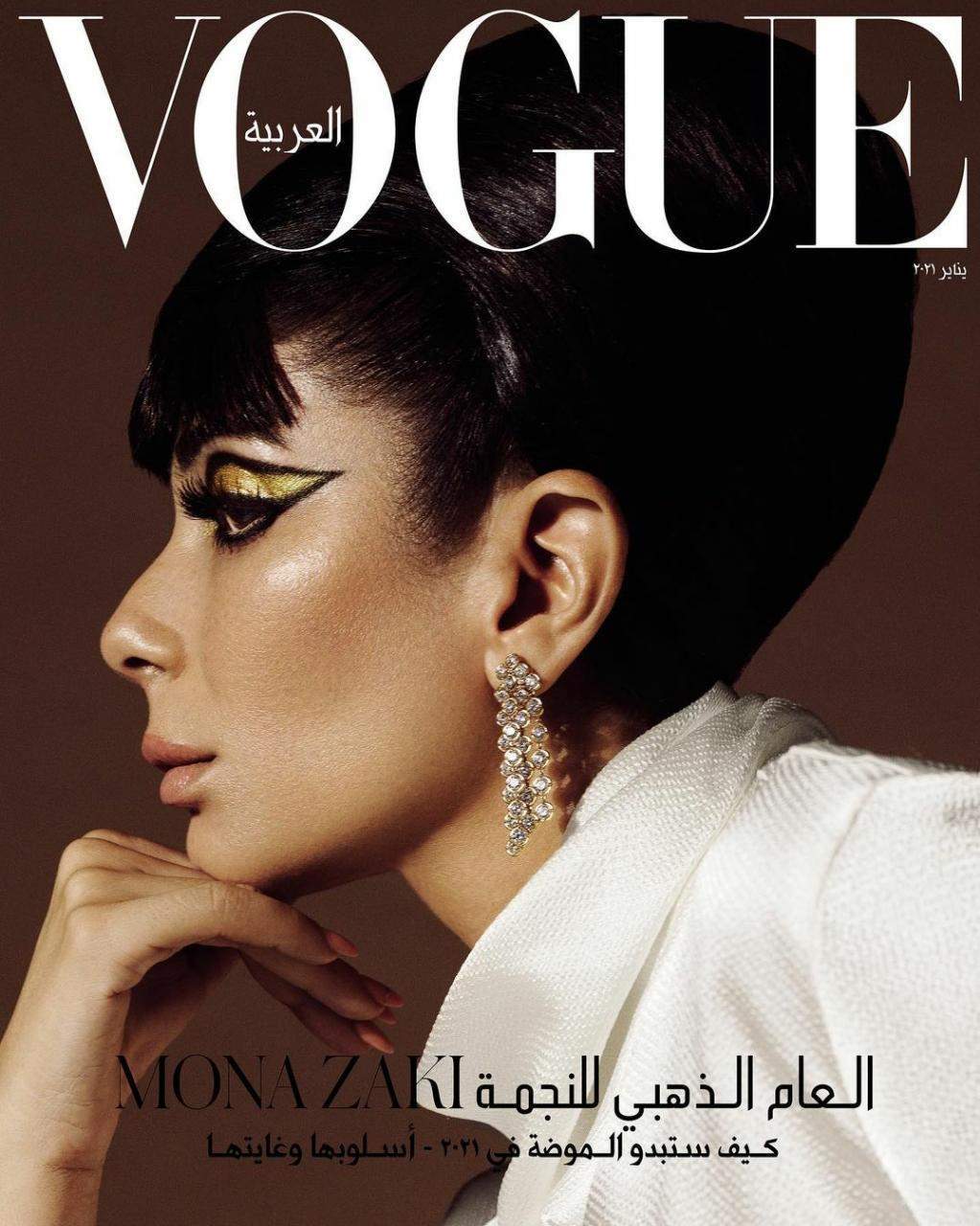 وظهرت الفنانة منى زكي على غلاف مجلة فوج آرابيا العالمية - VOGUE ARABIA، بإطلالة مختلفة وجذابة، إذ اعتمدت على مكياج صاخب غير ملامح وجهها كليًا، تلك الإطلالة التي وصفها متابعو الفنانة بأنها الأقرب للشكل الفرعوني.