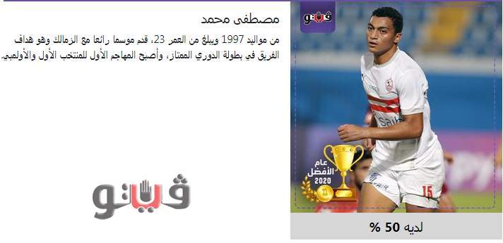 مصطفى محمد يفوز بلقب أفضل مهاجم في استفتاء "فيتو 2020"