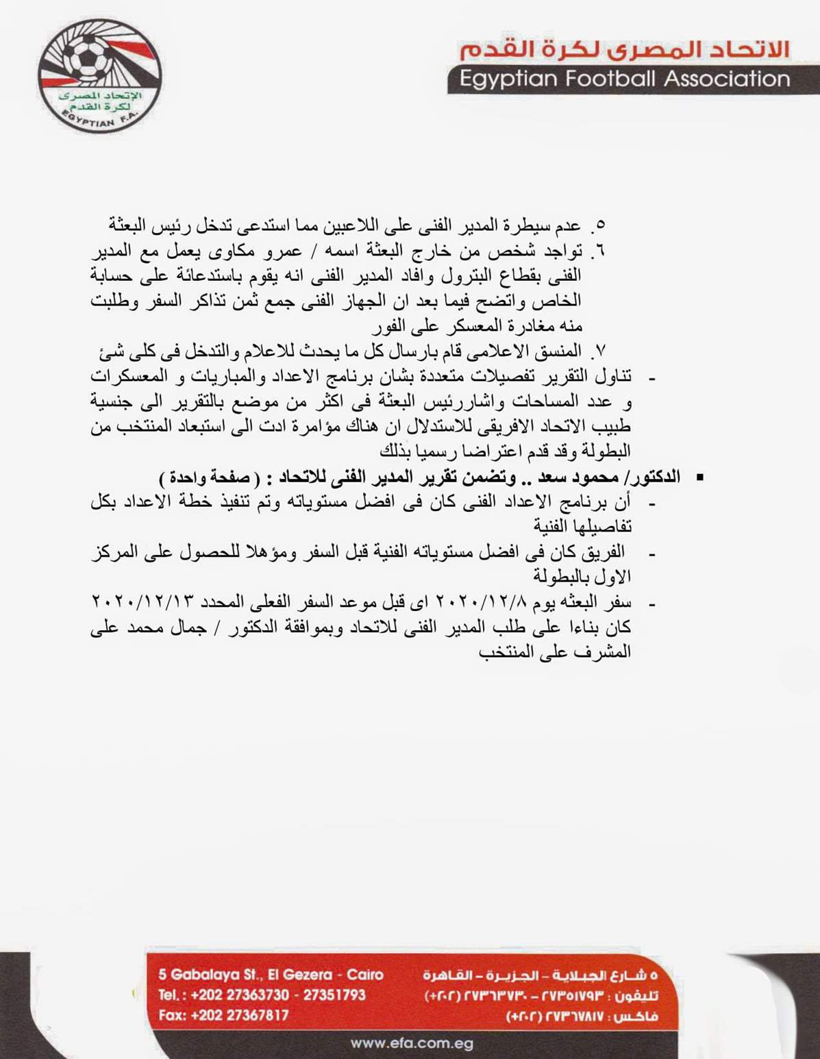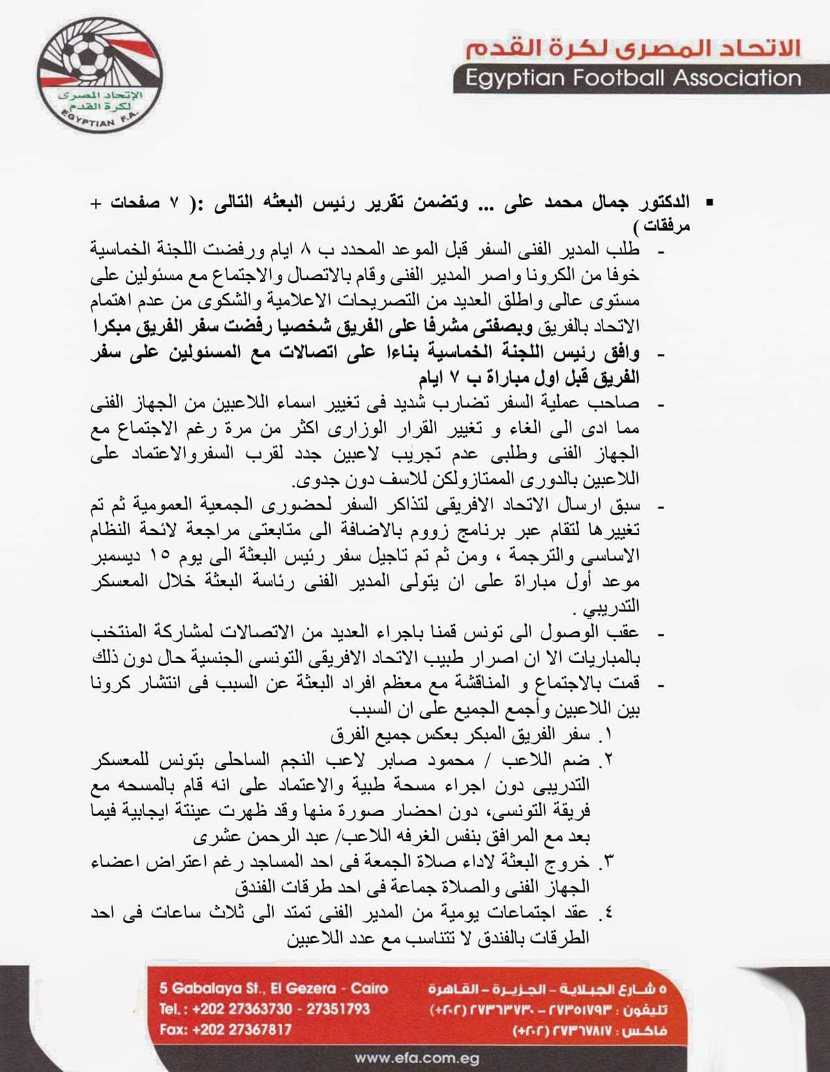 ونوه إلى أن تقرير جمال محمد على شكل انت سافر إلى تونس وعقد جلسة مع البعثة وان السفر المبكر وضم لاعب بالنجم الساحلي إلى منتخب تونس دون إجراء مسحة.